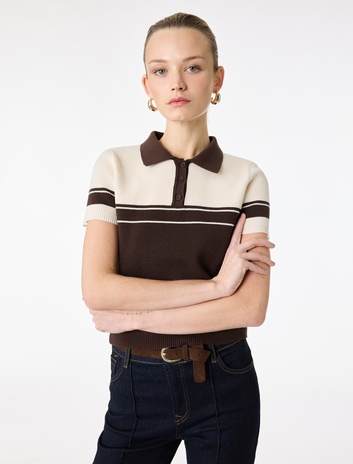 Kısa Kollu Çizgili Polo Yaka Triko Kazak