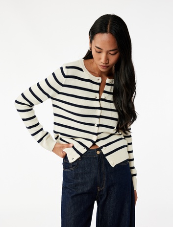 Uzun Kollu Düğmeli Bisiklet Yaka Çizgili Triko Hırka