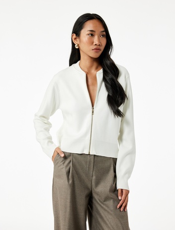 Dik Yaka Fermuarlı Uzun Kollu Triko Hırka