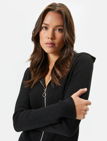 Fermuarlı Triko Hırka Dik Yaka Kaşkorse Uzun Kollu Sepete Ekle