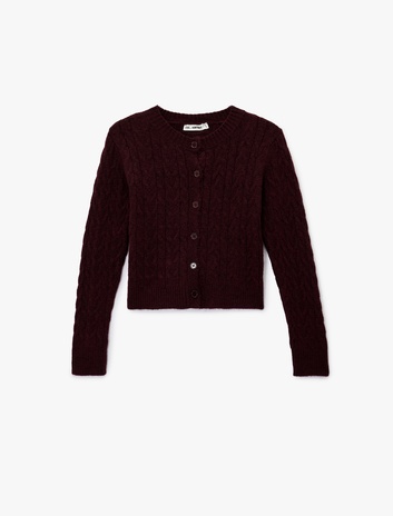 Bisiklet Yaka Düğmeli Saç Örgü Dokulu Triko Hırka Sepete Ekle