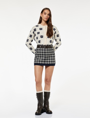 Fermuarlı Desenli Uzun Kollu Dik Yaka Triko Hırka