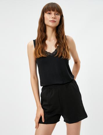 Beli Bağlamalı Dantel Detaylı Viskon Şort Pijama Altı