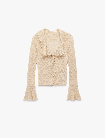 Koton X Sibil Çetinkaya - Slim Fit Yarı Transparan Yumuşak Dokulu Uzun Kollu Dantel Bluz Sepete Ekle