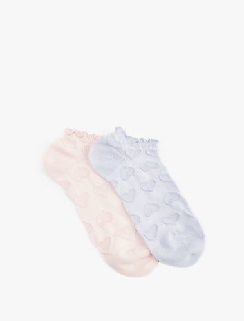 Kadın Kalp Dokulu Pamuklu Fırfırlı Çok Renkli 2'li Patik Çorap Seti