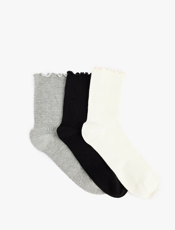 Pamuklu Fırfır Detaylı 3'lü Soket Çorap Seti Sepete Ekle