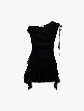 Asimetrik Yaka Kolsuz Büzgülü Slim Fit Mini Elbise Sepete Ekle
