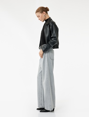 Yüksek Bel Pamuklu Geniş Paça Jean Pantolon - Wide Leg Jeans
