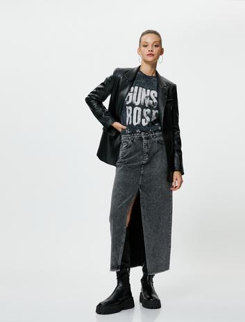 Midi Kot Etek Önden Yırtmaçlı Yüksek Bel Cepli Pamuklu