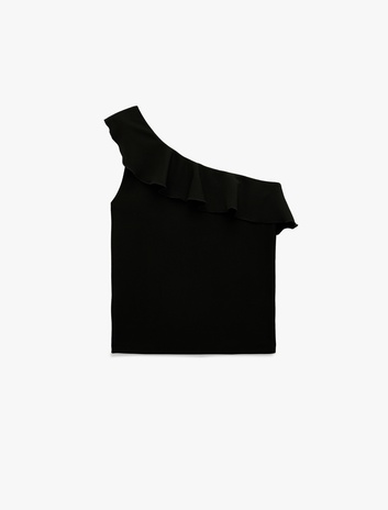 Slim Fit Fırfırlı Kolsuz Fitilli Tek Omuz Bluz