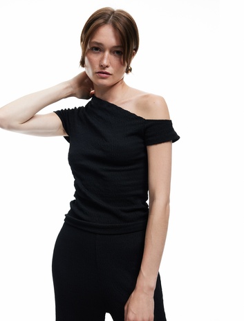 Bürümcük Kumaş Kısa Kollu Asimetrik Tek Omuz Bluz