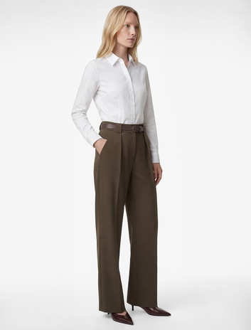 Slim Fit Yüksek Bel Kemerli İspanyol Paça Kumaş Pantolon