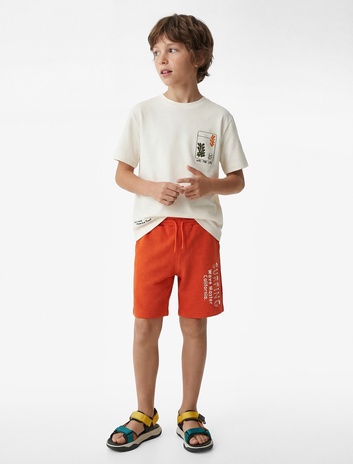 Erkek Çocuk Regular Fit Beli Bağcıklı Cepli Baskılı Şort