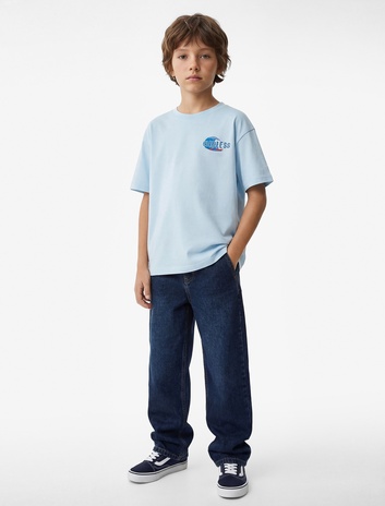 Erkek Çocuk Pamuklu Baskılı Bisiklet Yaka Kısa Kollu Tişört