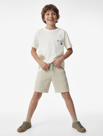 Erkek Çocuk Cepli Normal Bel Viskon Karışımlı Çizgili Şort