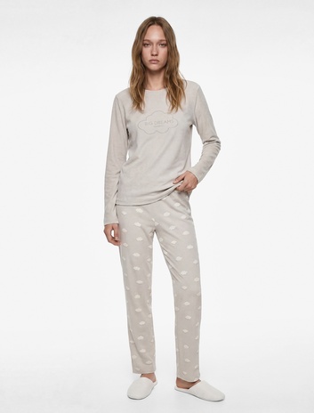 Uzun Kollu Bisiklet Yaka Rahat Kalıp Bulutlu Pijama Takımı