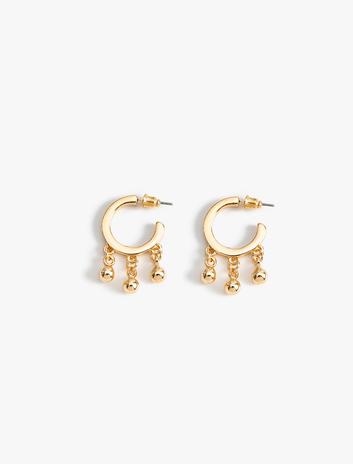 Kadın Küpe Top Detaylı Yarım Halka