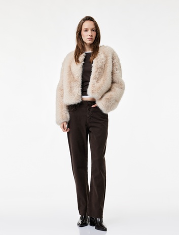 Suni Kürk Mont Kısa Kruvaze Uzun Kollu