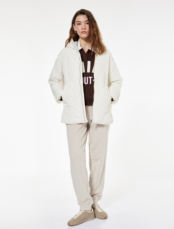 Uzun Kollu Cepli Fermuarlı Kapüşonlu Kapitone Mont