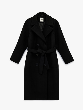Kemerli Kaşe Kaban Kruvaze Düğmeli Uzun Kollu Cepli