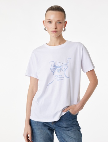 Regular Fit Kısa Kollu Bisiklet Yaka Pamuklu Fiyonklu Tişört Sepete Ekle