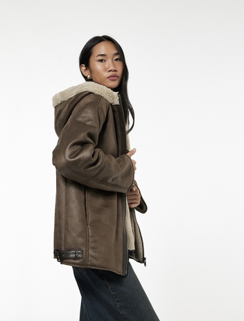 Fermuarlı Uzun Kollu Cepli İçi Suni Kürklü Kapüşonlu Suni Süet Mont Sepete Ekle