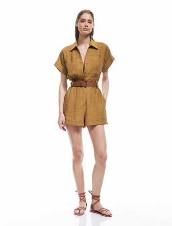 Viskon Cepli Kemerli Kısa Kollu Şort Tulum