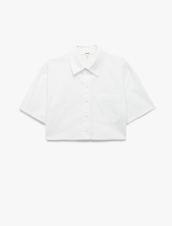 Pamuklu Kısa Kollu Klasik Yaka Crop Poplin Gömlek