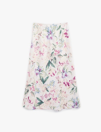 Kloş Kesim Midi Çiçekli Saten Etek Sepete Ekle