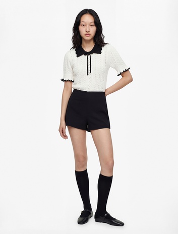 Fırfırlı Ajurlu Kısa Kollu Bağcıklı Bebe Yaka Triko Kazak Sepete Ekle
