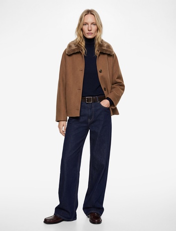 Uzun Kollu Çıkarılabilir Suni Kürk Yaka Oversize Kısa Kaşe Kaban Sepete Ekle
