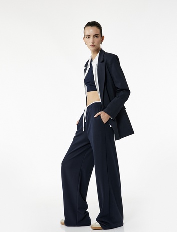 Cepli Çift Bel Detaylı Bağlamalı Geniş Paça Eşofman Altı