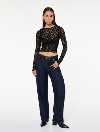 Slim Fit Uzun Kollu Bisiklet Yaka Dantel Bluz Sepete Ekle