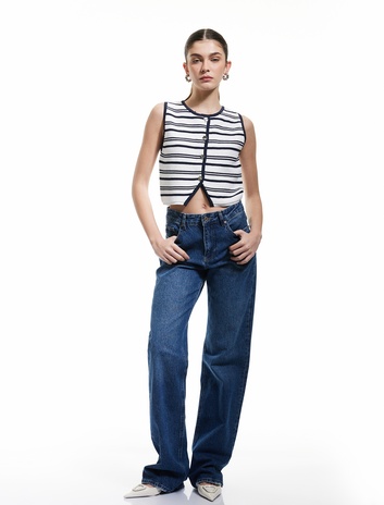 Düğmeli Kolsuz Dokulu Bisiklet Yaka Çizgili Triko Yelek Sepete Ekle