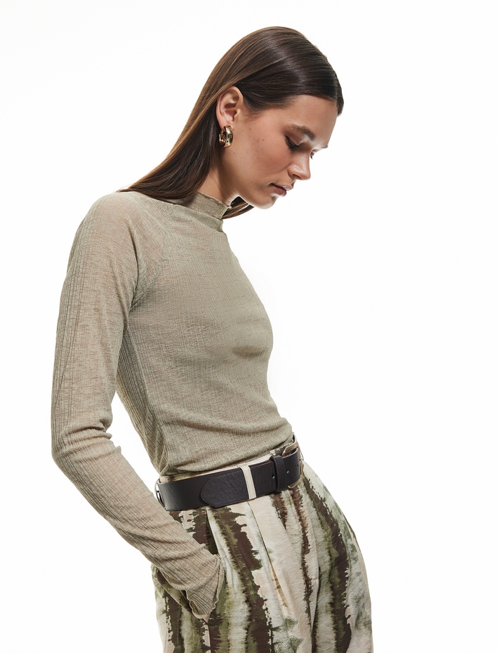 Yumuşak Dokulu Uzun Kollu Hafif Dik Yaka Saç Örgü Kazak