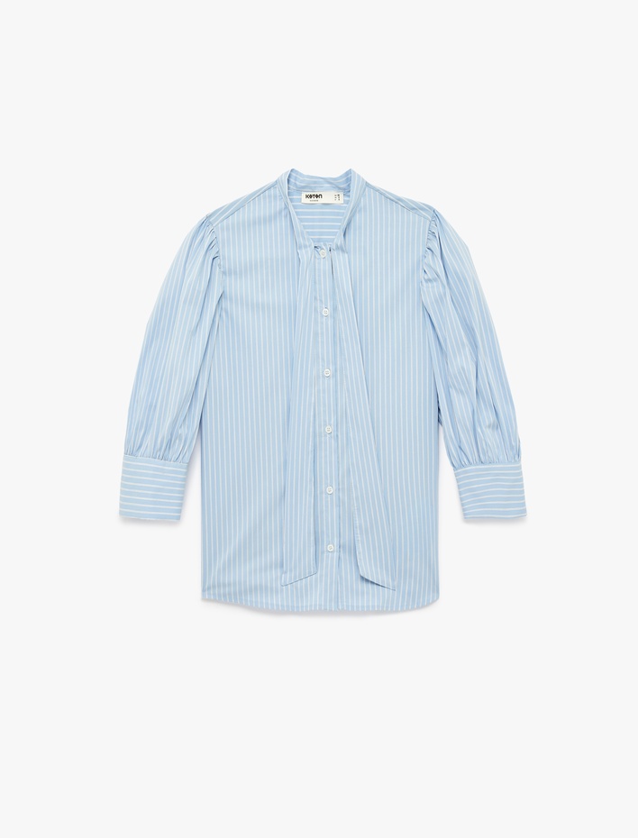 Kravat Detaylı Uzun Balon Kollu Düğmeli Poplin Gömlek Sepete Ekle