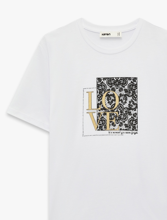 Dantel Detaylı Kısa Kollu Bisiklet Yaka Modal Karışımlı Slim Fit Tişört Sepete Ekle
