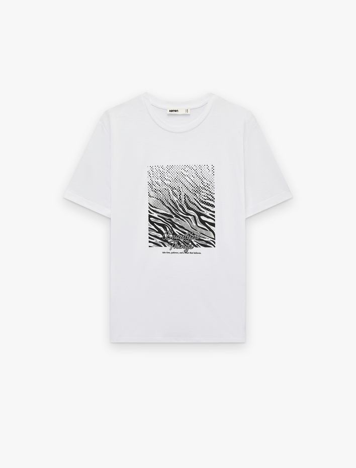 Kısa Kollu Bisiklet Yaka Baskılı Tişört Sepete Ekle