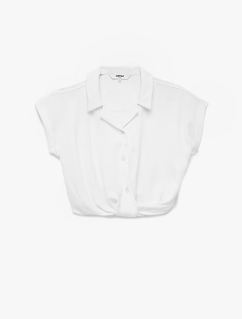 Bağlama Detaylı Düğmeli Kolsuz Gömlek Yaka Tişört Sepete Ekle