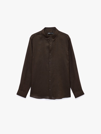 Regular Fit Düğmeli Yaka Uzun Kollu Keten Gömlek Sepete Ekle