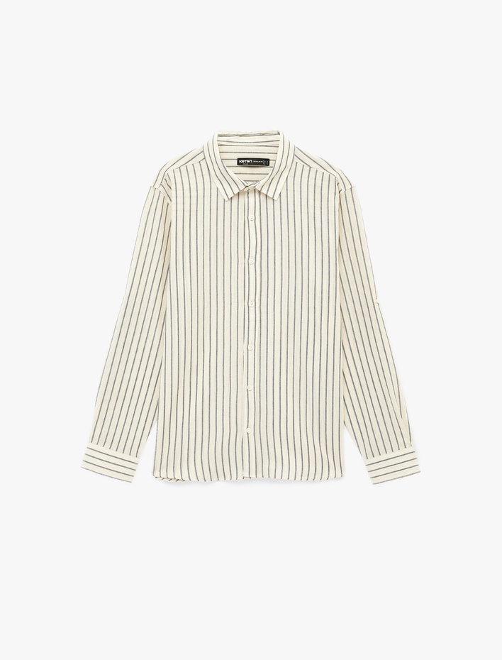 Klasik Yaka Regular Fit Uzun Kollu Pamuklu Çizgili Gömlek Sepete Ekle