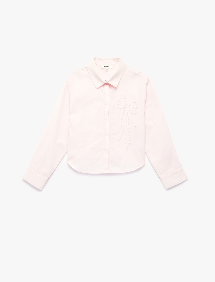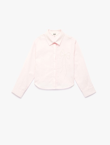 Uzun Kollu Klasik Yaka Kurdele Detaylı Pamuklu Poplin Gömlek Sepete Ekle