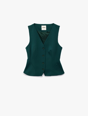 Slim Fit Peplum Kesim V Yaka Düğmeli Blazer Yelek
