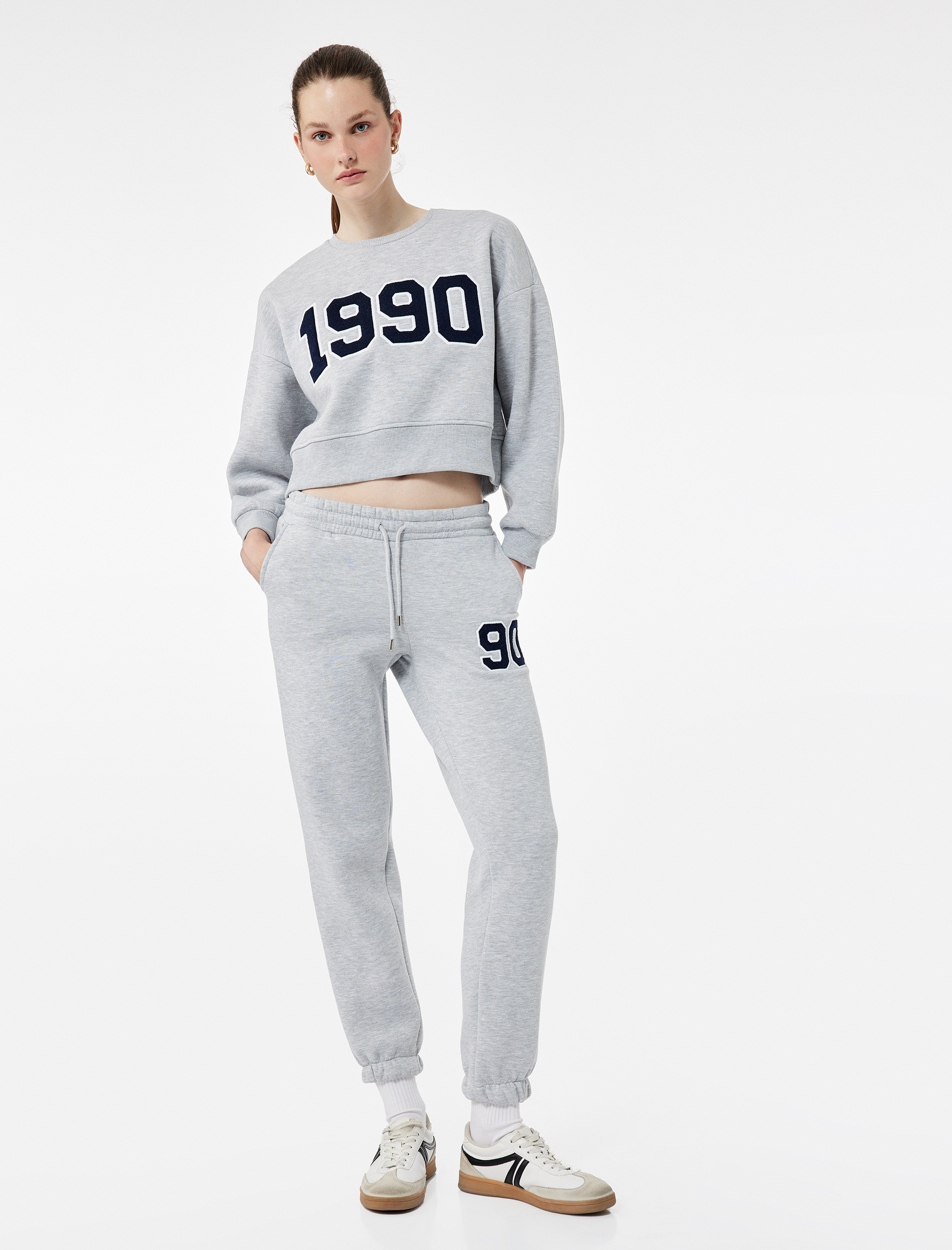 Üç İplik Şardonlu Nakışlı Cepli Beli Bağcıklı Jogger Eşofman Altı