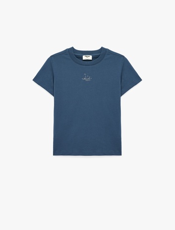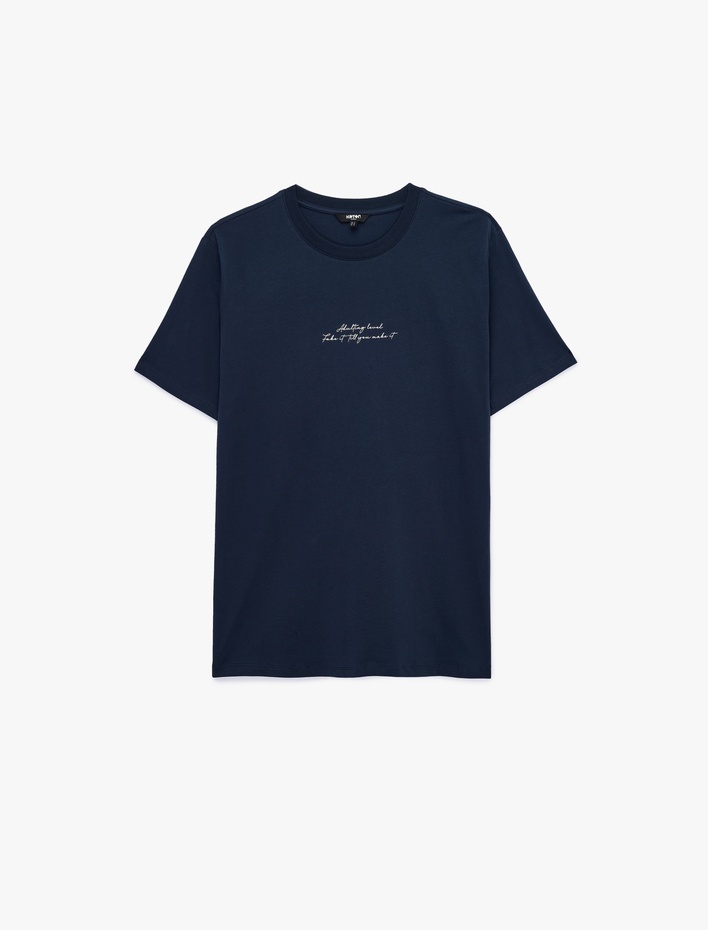 Bisiklet Yaka Kısa Kollu Nakışlı Pamuklu Tişört Sepete Ekle