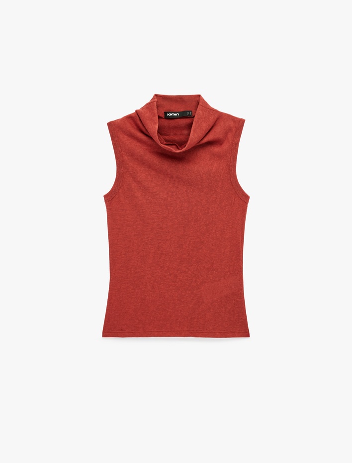 Düğme Detaylı Kolsuz Bisiklet Yaka Brodeli Bluz Sepete Ekle