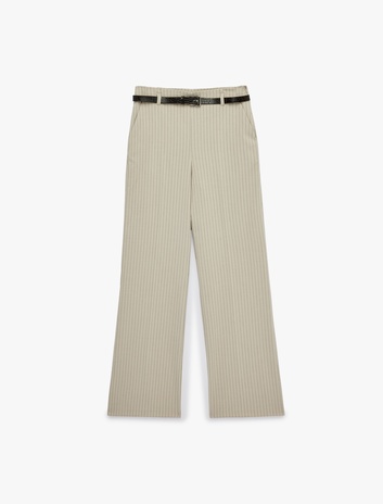 Cepli Kemerli Çizgili Geniş Paça Kumaş Pantolon Sepete Ekle