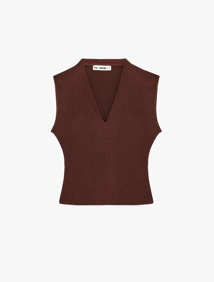 Dokulu Kolsuz Slim Fit V Yaka Bluz