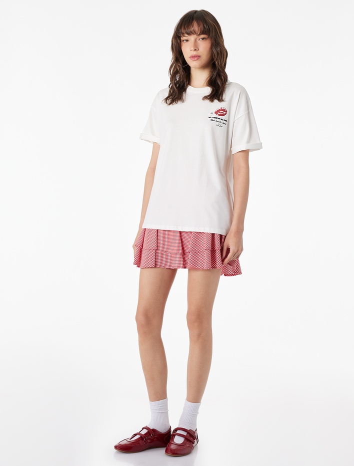 Bisiklet Yaka Rahat Kalıp Kısa Kollu Arkası Baskılı Pamuklu Tişört Sepete Ekle