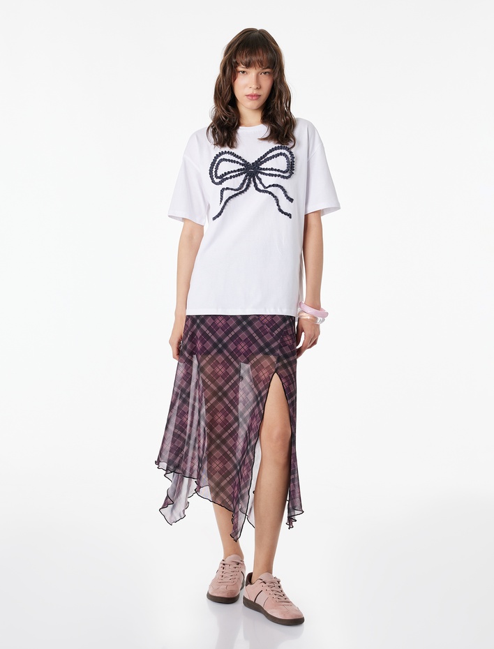 Kısa Kollu Bisiklet Yaka Fiyonklu Rahat Kalıp Pamuklu Tişört Sepete Ekle